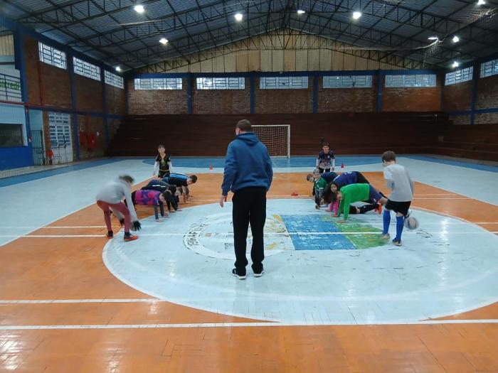 Na última segunda-feira, 09 de junho, o Ginásio Municipal Luiz João Bortoncello foi palco de mais uma aula semanal voltada ao fortalecimento das categorias de base no município de Ibirapuitã.