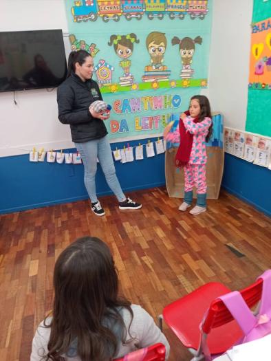 Como parte da programação, a turma recebeu a visita da técnica de enfermagem Maria Elisabete Vieira, que abordou, de forma prática e lúdica, temas relacionados à higiene pessoal e aos cuidados com o corpo. A profissional compartilhou orientações importantes e demonstrou medidas simples que fazem a diferença no dia a dia das crianças.