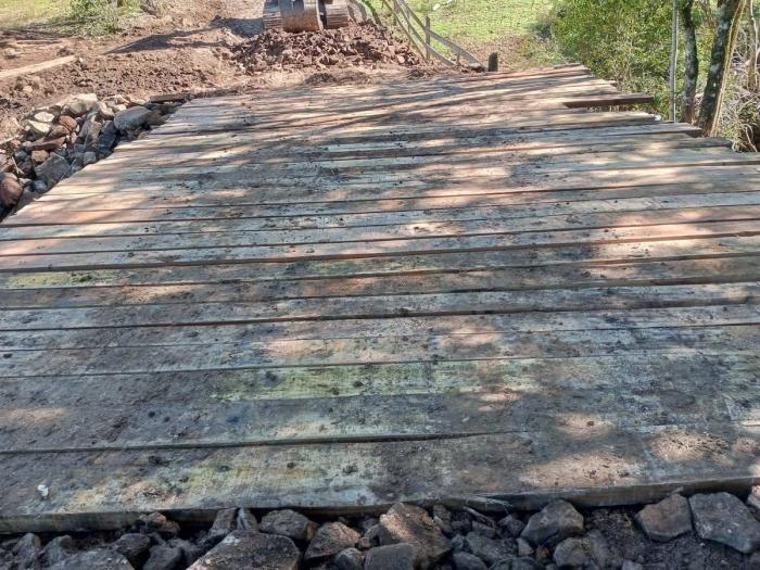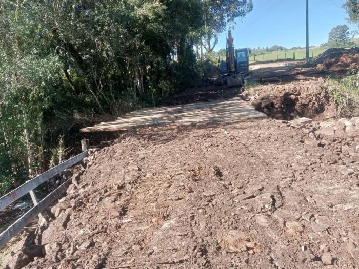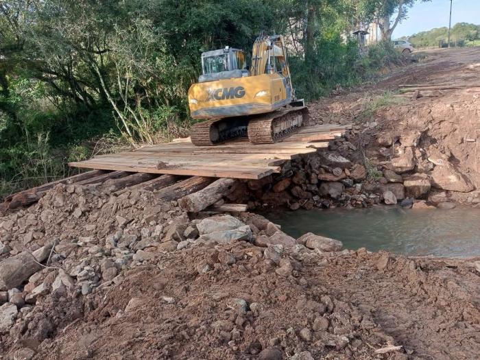 Nesta semana, os serviços foram concentrados nas localidades de Linha São João e Bom Sossego, onde foram realizados trabalhos de patrolamento, tapa-buracos e remoção de resíduos acumulados em decorrência das chuvas. Além disso, foi construída uma nova ponte na propriedade que dá acesso ao munícipe João Carlos dos Santos.