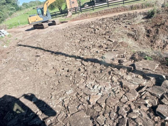 Também foi realizada a detonação da pedreira municipal, ação necessária para viabilizar a continuidade das obras de recuperação das vias.