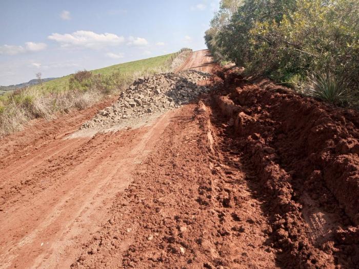 Foram executados serviços de patrolamento, colocação de pedras e construção de bueiros, com o objetivo de aprimorar as condições das estradas e garantir mais segurança e acessibilidade aos moradores da zona rural.