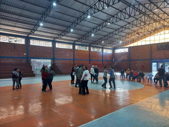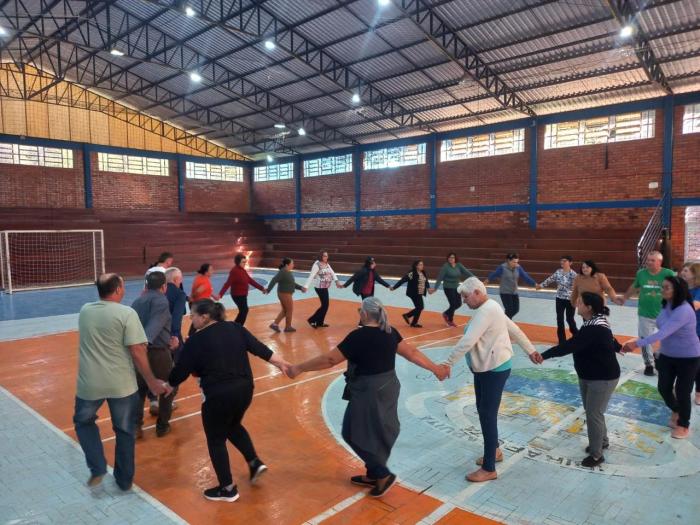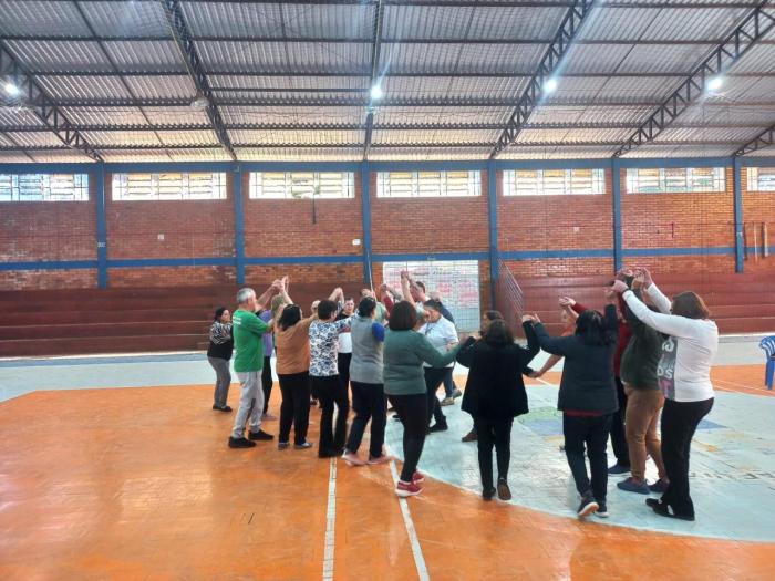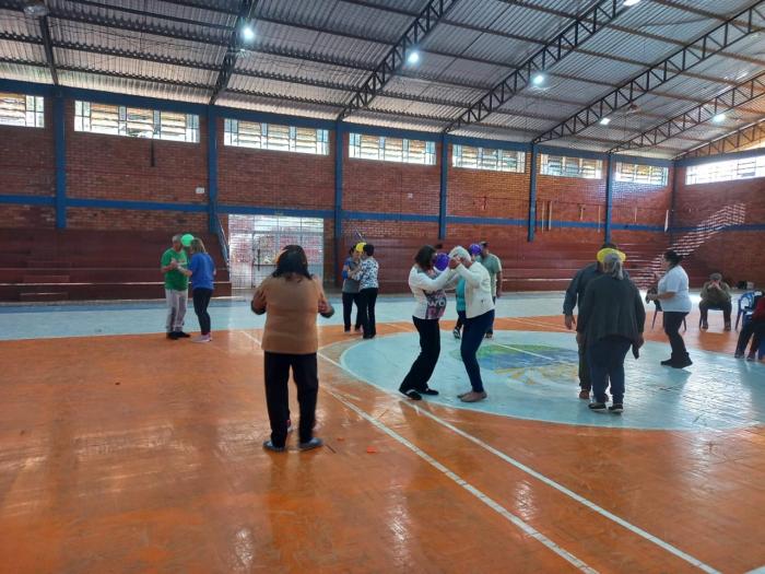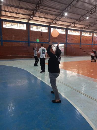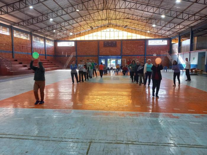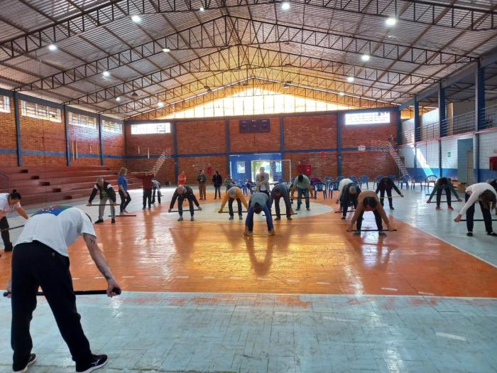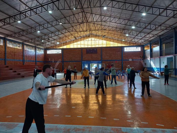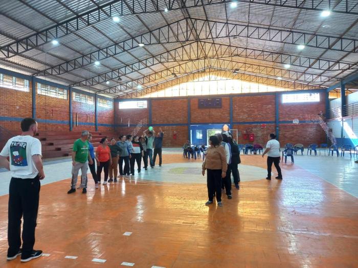 Coordenadas pelo professor Brendon Datsch Henkes, as atividades físicas realizadas contaram com exercícios adaptados que utilizam balões e bastões, promovendo a mobilidade articular, o fortalecimento muscular dos braços, ombros e tronco, além de estimular o equilíbrio e a postura.