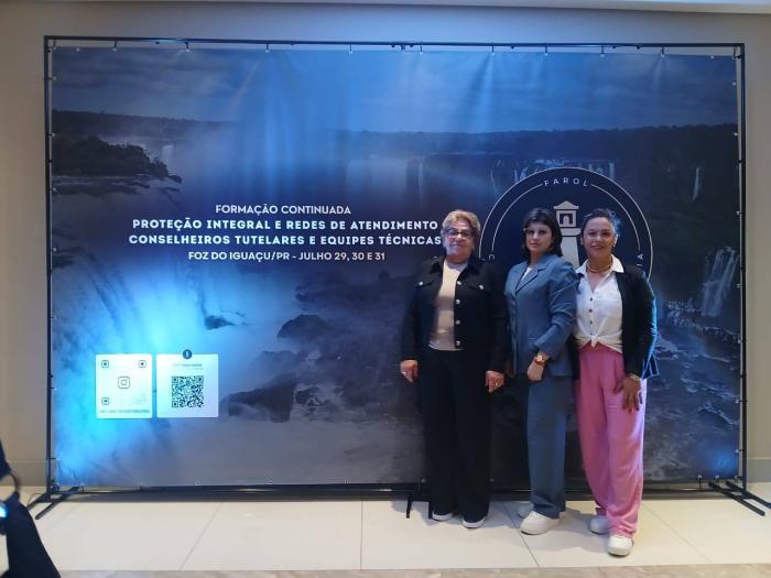 As conselheiras tutelares Marlene Klar, Janes de Carvalho e Neiva Guizzo participaram, entre os dias 29 a 31 de julho de 2025, da Formação Continuada sobre Proteção Integral e Redes de Atendimento, realizada em Foz do Iguaçu/PR.