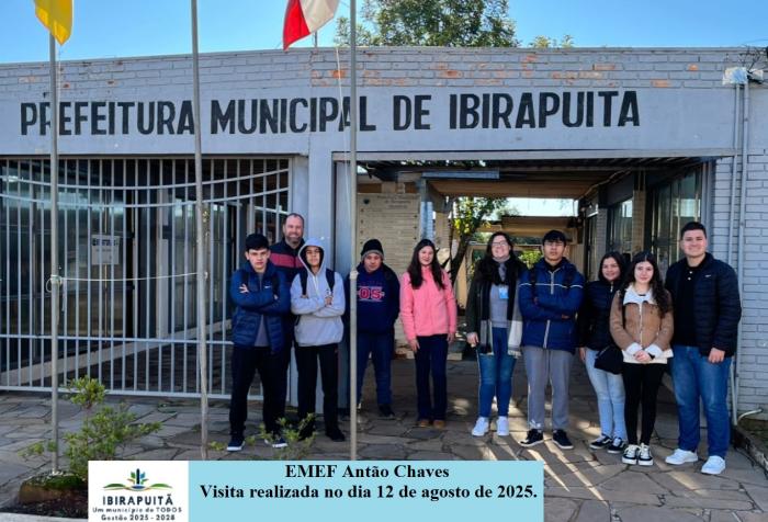 Igualmente, na manha desta terça-feira, 12/08, outro grupo de alunos do 6° ao 9°Ano da EMEF Antão Chaves visitou a Prefeitura Municipal e conheceu o funcionamento da administração pública.