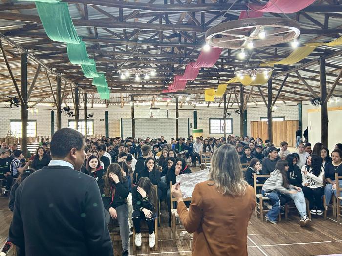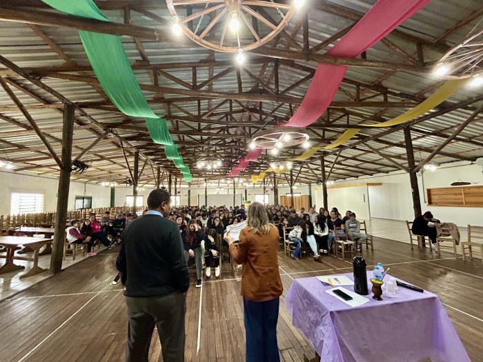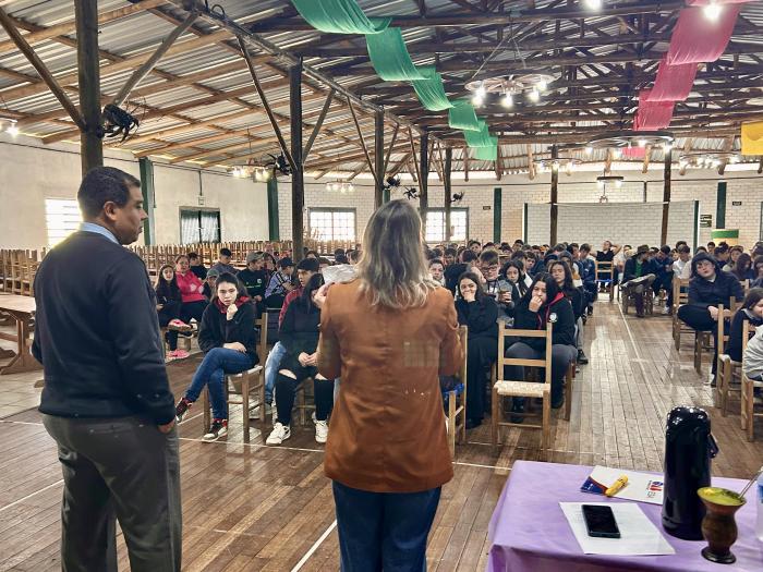 Durante o encontro, os palestrantes Dr. Edilson Jr. Santos, presidente da OAB subseção Soledade/RS, e Dra. Shaiane Pilatti, abordaram temas fundamentais para o desenvolvimento social e educacional dos jovens, entre eles: promoção e cultura da paz; bullying e violência; uso de “vapes” e cigarros eletrônicos; racismo; direitos e deveres das crianças e adolescentes, a partir do Estatuto da Criança e do Adolescente (ECA).