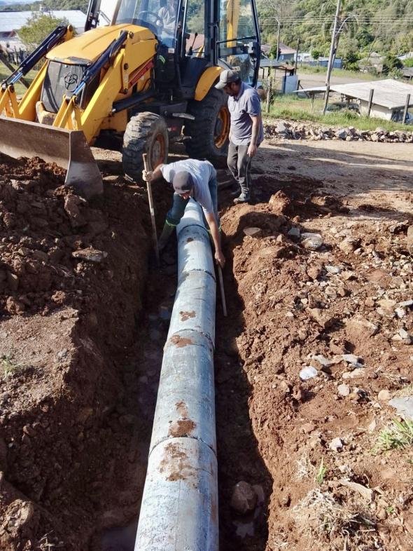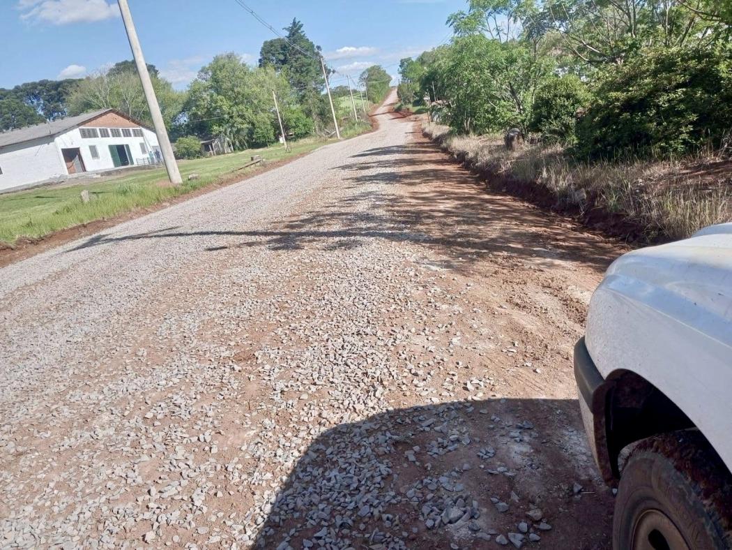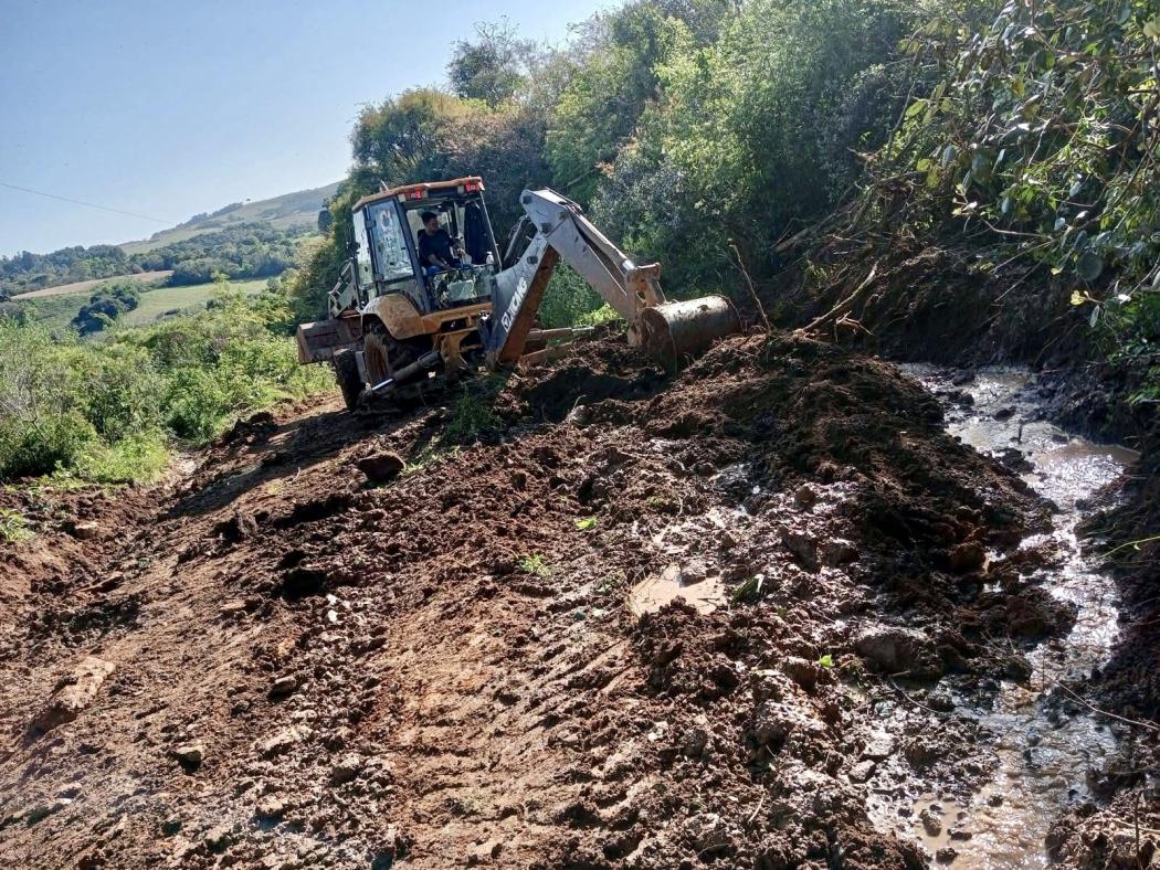 No interior, os trabalhos seguem em ritmo acelerado. Foi realizado a limpeza de sarjetas e construção de bueiro próximo ao antigo alambique, remoção de entulhos na comunidade da Encruzilhada Povinho, abertura de valeta para rede de água na propriedade de Claudemir Rigo, melhorias na estrada geral que dá acesso ao Passo da Lage e Santos Vaz, reparo de ponte na propriedade de Posse Lemes, serviços na barragem dos condomínios, e a construção de ponte com galeria na entrada da comunidade de Palmeiras.