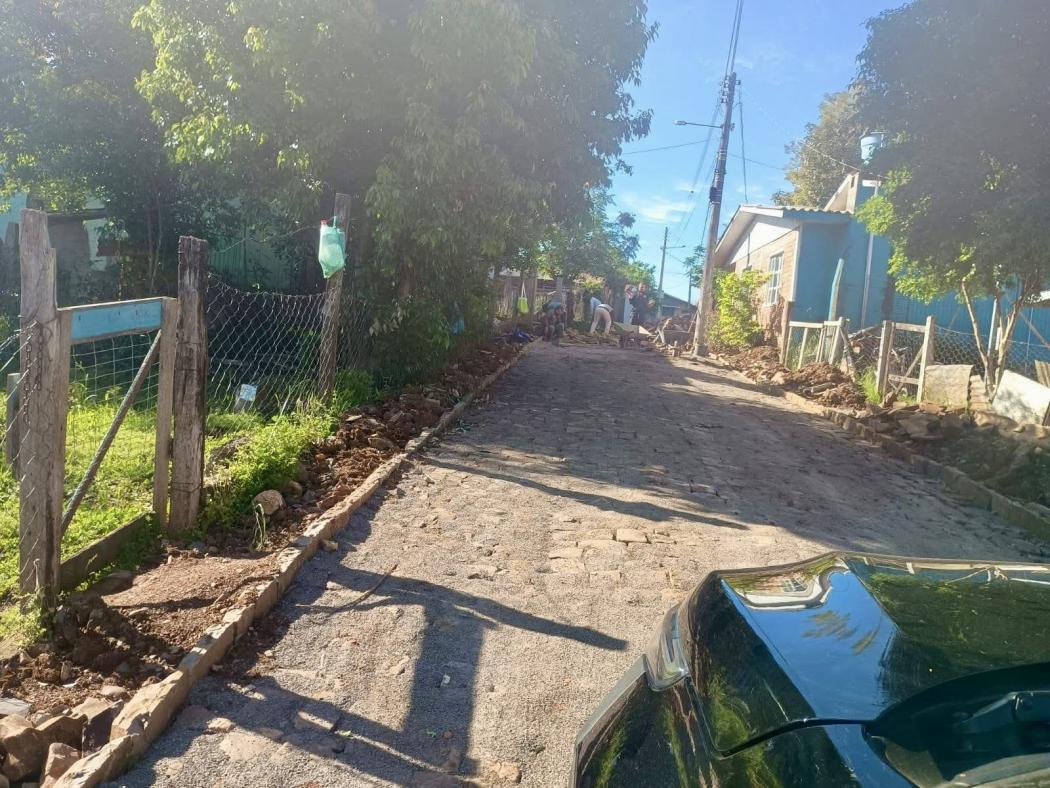 Também está em andamento a pavimentação de uma travessa no Bairro Jardim, nas proximidades da família Anunciação. Ainda no mesmo bairro, foi concluída a pavimentação de uma rua próxima ao antigo britador, melhorando as condições de tráfego e acesso para os moradores.