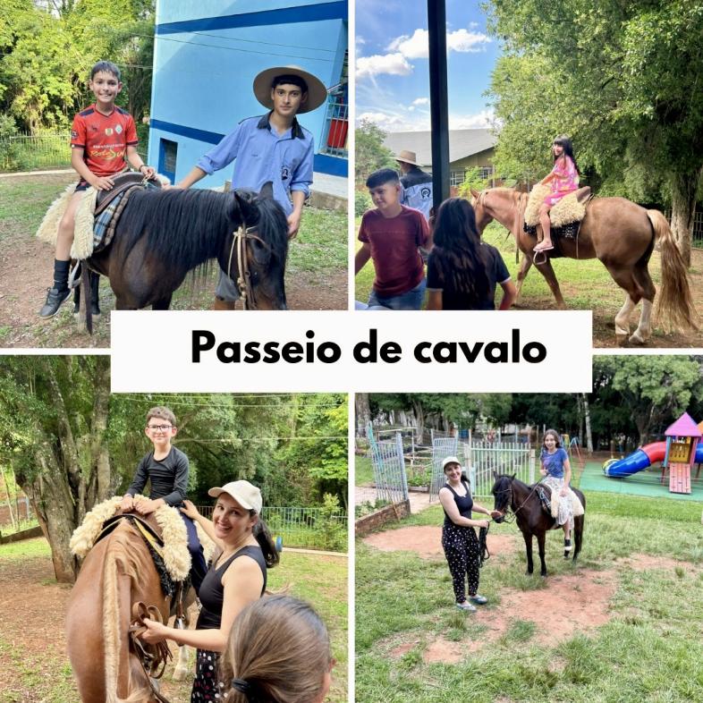 Para marcar o encerramento das atividades, os alunos também participaram de um passeio a cavalo, vivência que complementou os aprendizados e trouxe ainda mais entusiasmo ao momento.