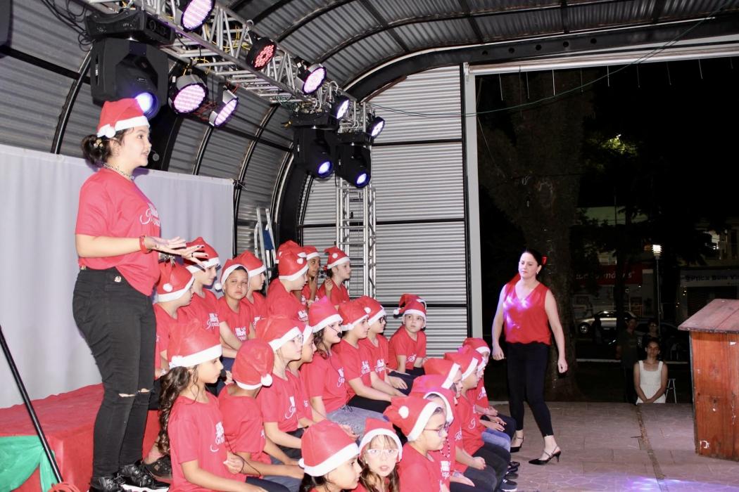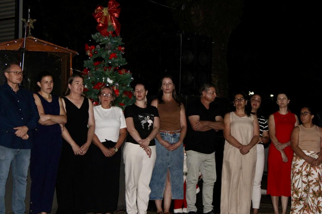 A noite reuniu um público expressivo na praça, que acompanhou atentamente todas as atividades programadas para o início das festividades natalinas.